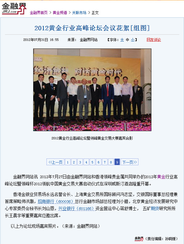领峰杯2012领航中国黄金交易大赛由领峰贵金属与中国知名财经网站《金融界》共同举办,于2012年7月27日在深圳威斯汀酒店正式启动。此次黄金大赛领峰贵金属送出史无前例的丰富奖品,包括:奔驰E系列房车、卡地亚名贵手表、Sony新款65寸3D立体LED电视等等,送出奖金奖品超过300万。