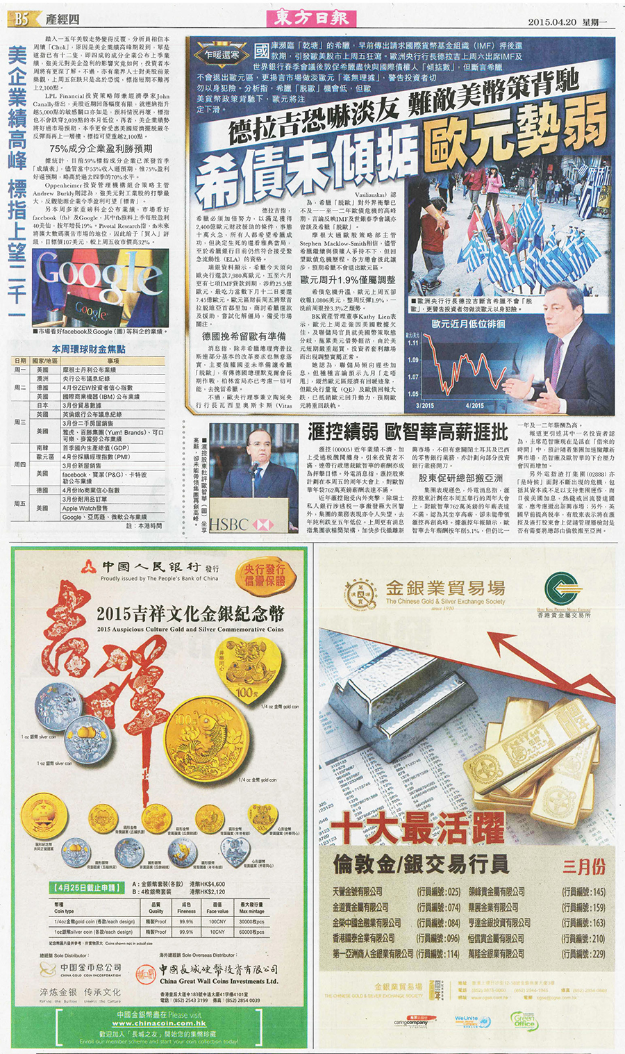 2015年4月20日,东方日报刊登了香港金银业贸易场2015年3月份“十大最活跃伦敦金/银交易行员”的名单,领峰贵金属再续辉煌,荣获「最活跃伦敦金/银交易商」称号。该榜单由香港金银业贸易场审核行员交易数据后进行评定并发布,公平公正公开。