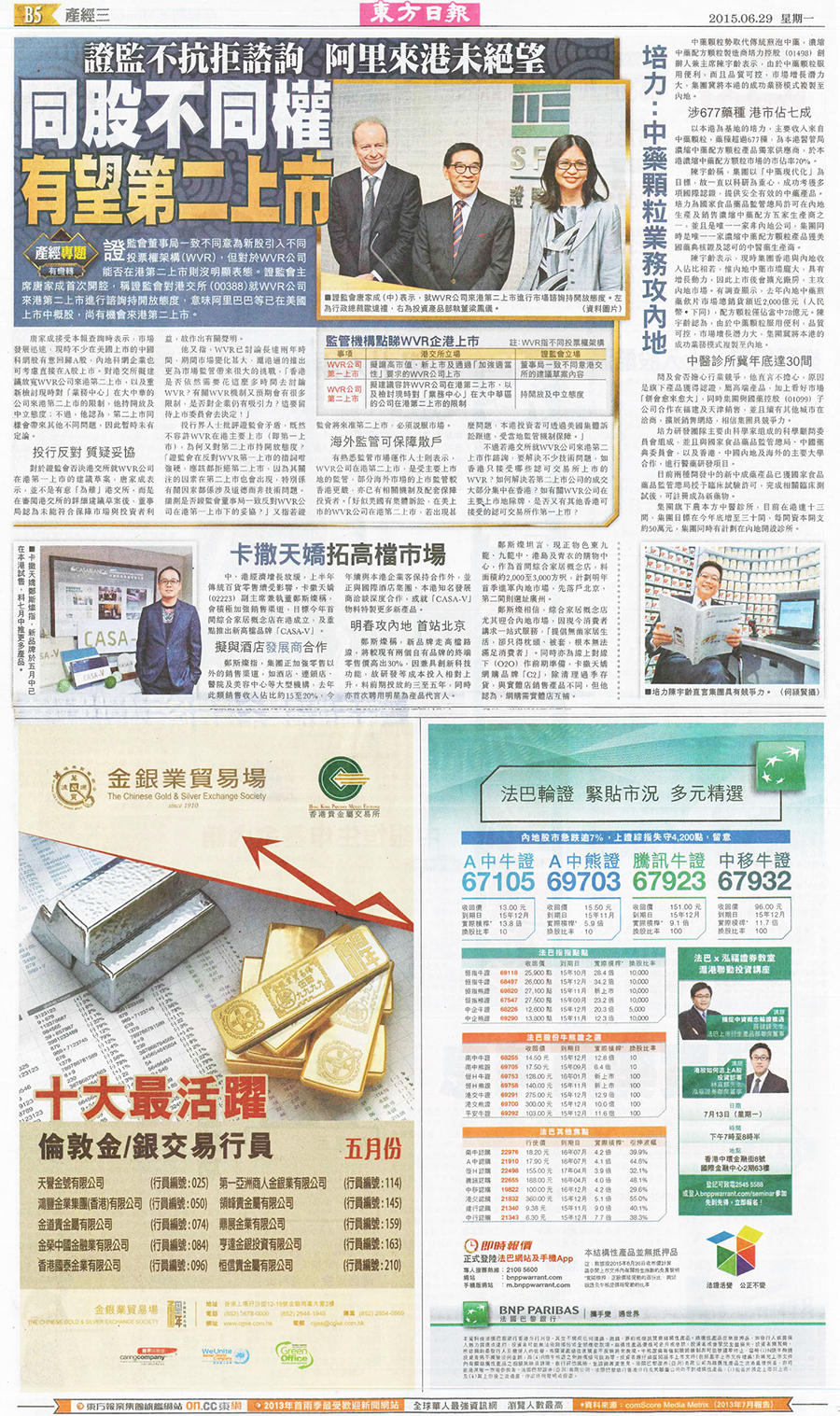 5月份“金银业贸易场十大最活跃伦敦金/银交易行员”名单于2015年6月29日在东方日报刊登,这项排名旨在嘉许行业内市场业绩最优秀的行员。领峰贵金属凭借优质服务及彪炳的成交量,再续辉煌,连续超过两年获得该称号,得到了监管机构金银业贸易场、广大投资者以及业界的高度认可。